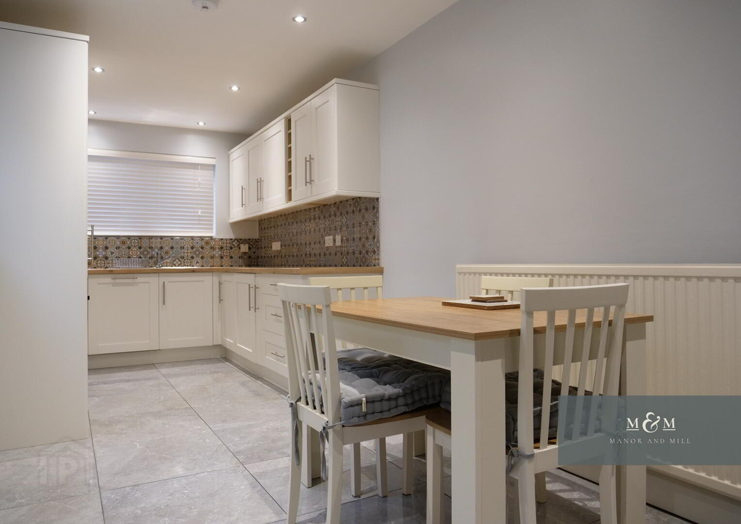 A stylish, contemporary kitchen with integrated appliances and dedicated dining space — perfect for everyday family living or entertaining guests.