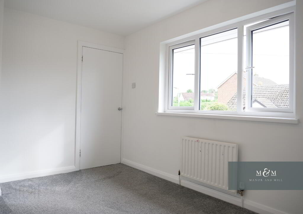 Upstairs, the carpeted staircase leads to three well proportioned bedrooms. Two generously sized double rooms, tastefully decorated and finished with soft carpet, provide comfortable sleeping accommodation. A further spacious single bedroom includes built-in wardrobe storage.