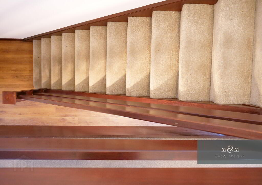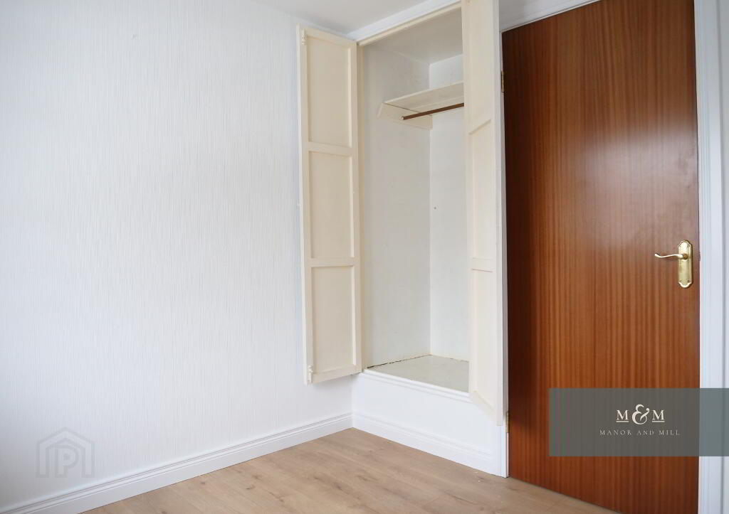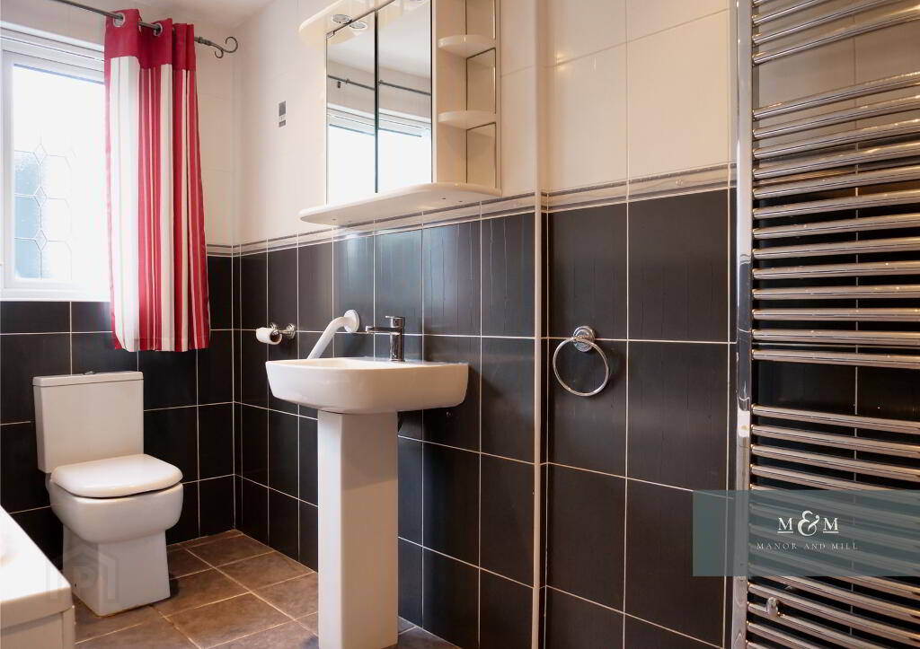 Upstairs, the carpeted staircase leads to three well proportioned bedrooms. Two are generously sized double rooms, both freshly decorated, one finished with soft toned laminate flooring, the other with built in bedroom furniture. A further spacious single bedroom includes built in wardrobe storage and is also finished in soft toned laminate flooring.