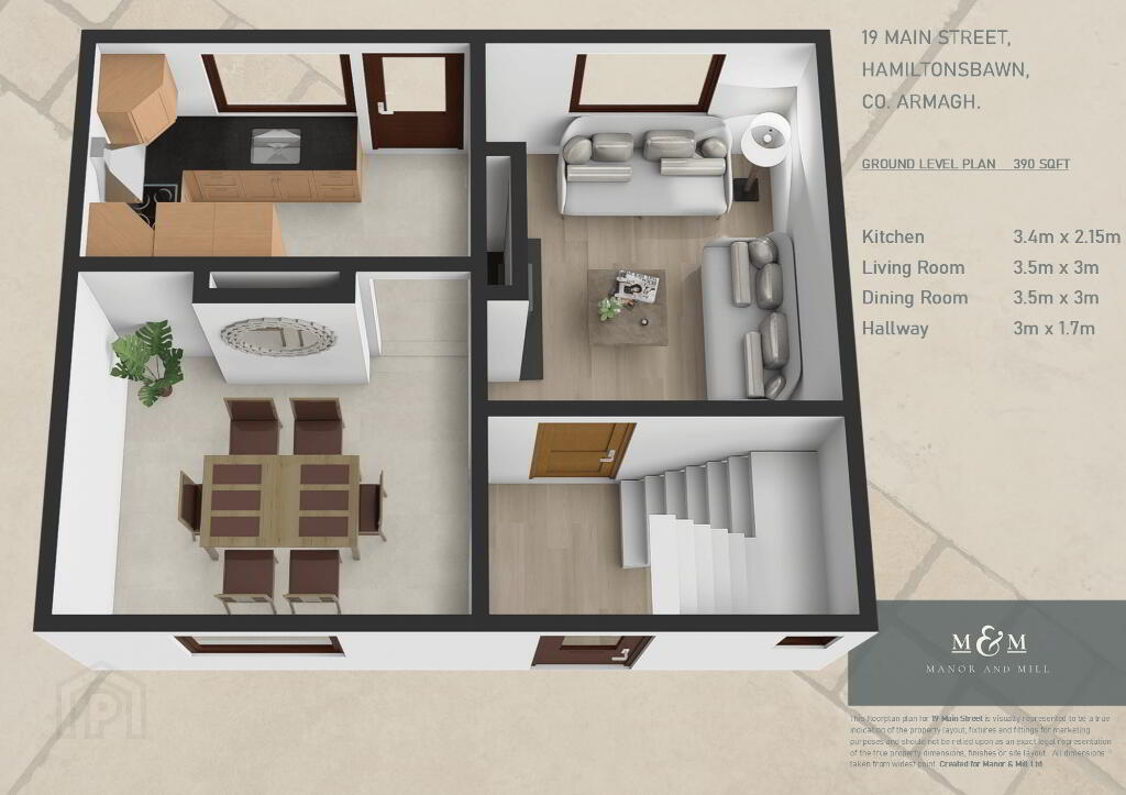 No. 19 is located on the main street of Hamiltonsbawn, with a private front entrance and a tarmac driveway.