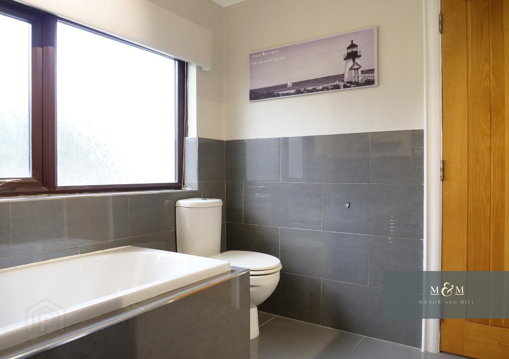 Step inside to a bright hallway with wood-effect flooring. Solid oak internal doors add a sense of luxury. The kitchen, with its tiled flooring, offers lovely views of the rear garden. At the front of the home is a separate dining room with tiled flooring and access to both the main hall and the kitchen. Towards the rear, you’ll find the family room, featuring wood effect flooring, a wood burning stove, and views of the private, enclosed rear garden, all creating a relaxing atmosphere.