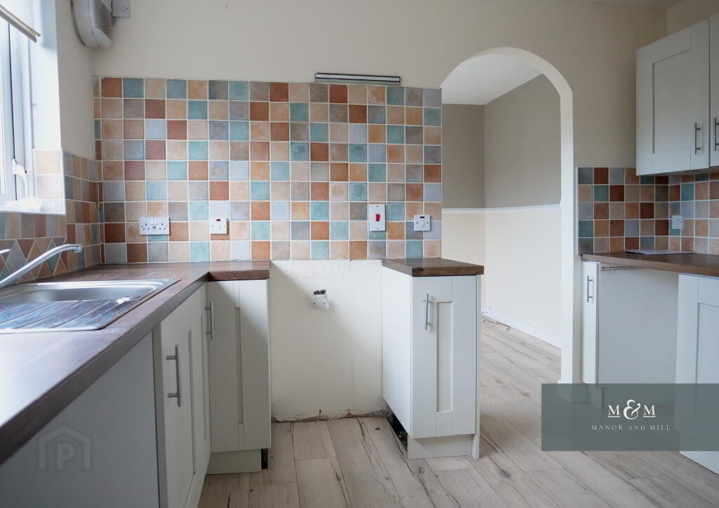 - Open plan kitchen dining room.