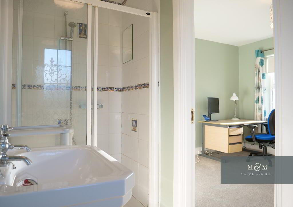 On the first floor, the property boasts five generously sized bedrooms, including a master bedroom with a dressing area and en suite shower room. A well appointed family bathroom, complete with both bath and separate shower, serves the remaining bedrooms.