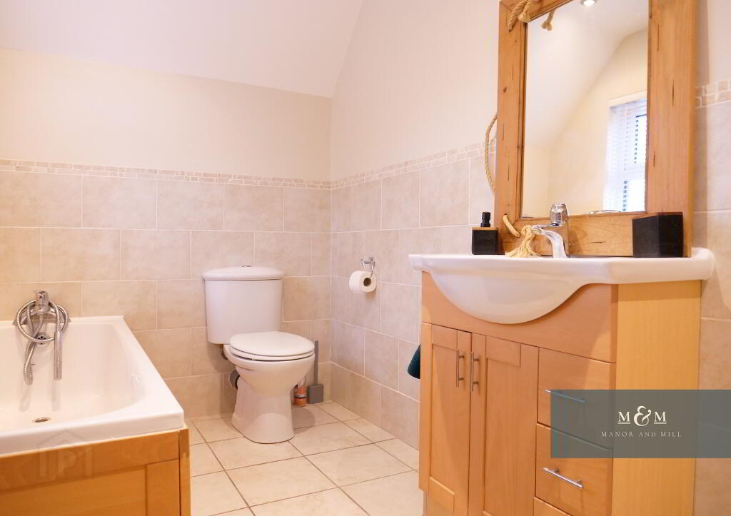 Moving to the first floor, the master bedroom is located to the front of the home and features a dormer window which fills the room with light. Two further double bedrooms are located to the rear of the first floor. The four-piece family bathroom includes a bath and separate power shower.