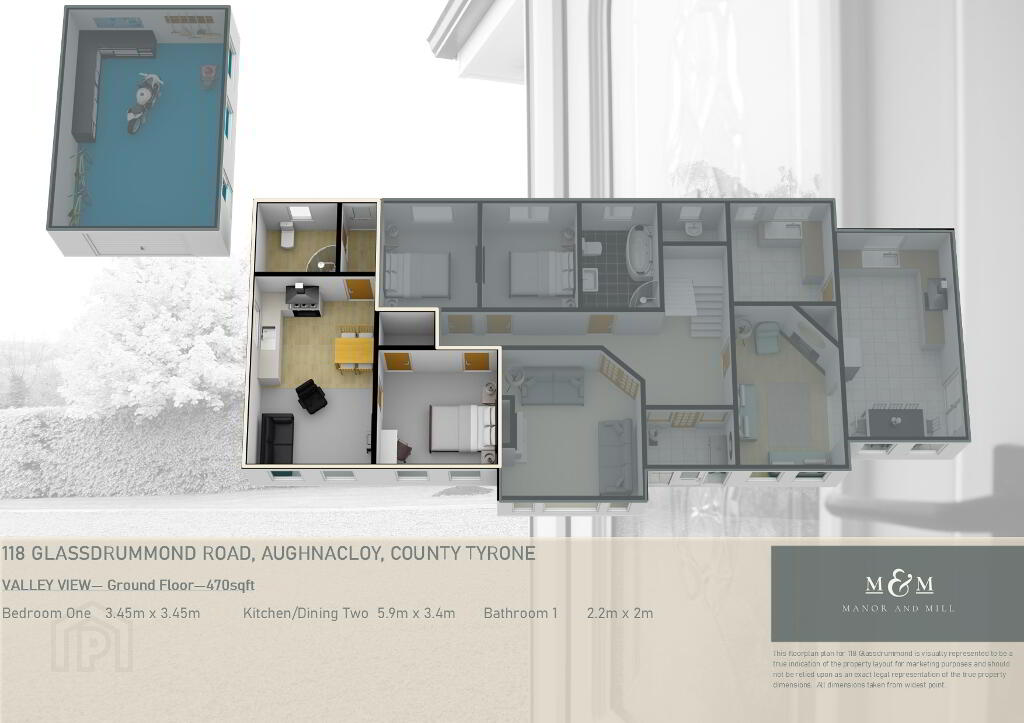 No 118 is located between Aughnacloy and Dungannon with excellent access to the M1 motorway. Derrylatinee Primary School is located close by as are the townlands of Eglish, Greystone and Carnteel. Surrounded by rolling valleys and never ending countryside, No 118 truly offers rural living with the convenence of mature townlands and access routes on your doorstep.