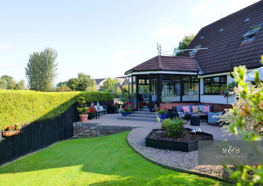 Step outside to this homes party piece with wrap around, private rear gardens and nothing but green pasture and mature tree lines beyond as your outlook. Perfectly broken up in to multiple areas, this rear garden features a large patio leading to lawn and gravelled flower beds. To the opposite side, the view point to the countryside opens up as you step on to the decked exterior dining area and fire pit lounge, all emersed in the evening sun.